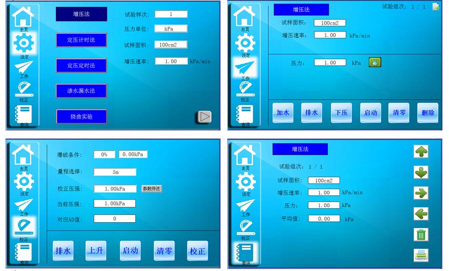 5、五種測試模式可選,增壓法,定壓計時法,定壓定時法,擾曲松弛及滲水漏水法。內置新國標測試方法有自動評級功能。
